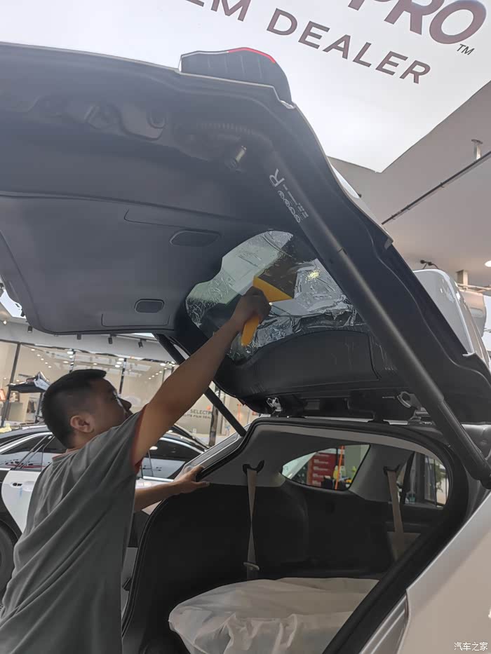 最难的就是后羿70前挡,先铺到前窗上,用热风枪烤出形状,再贴到窗子内侧,真是个技术活