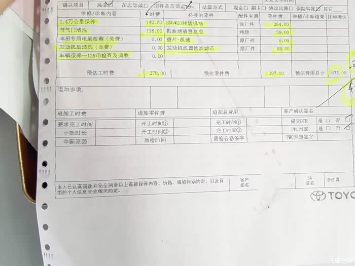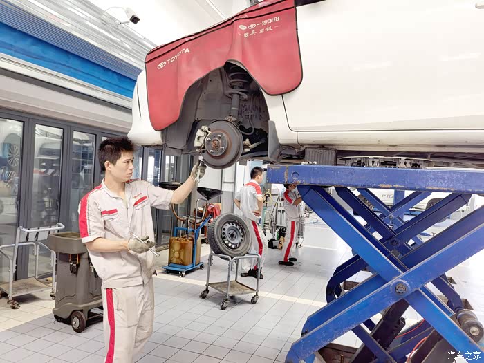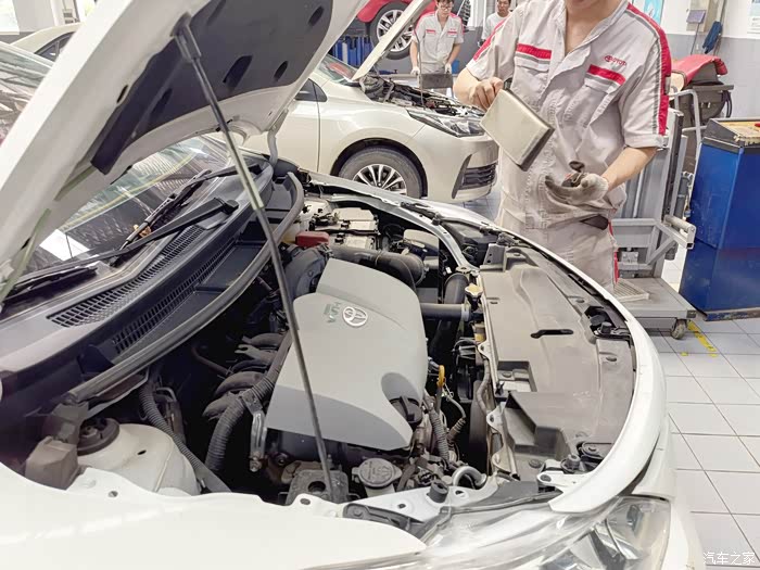 师傅在车间开始作业,师傅给换了机油机滤,用的也是原厂的机油还有正品标识给你看,部分的需要更换的零件也是原厂的,所以在店内做保养还是比较放心的,不用担心是否能与车相容,做保养的时候一定要提前阅读保养手册能给你省去一些不必要做的一些项目费用。做好保养对爱车好,更是对自己日常行车安全提高保障。保养做好出门无忧,它好你也好。