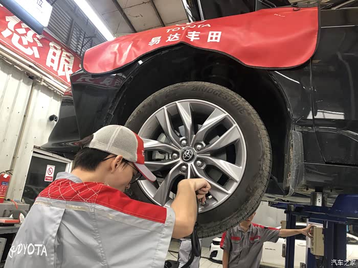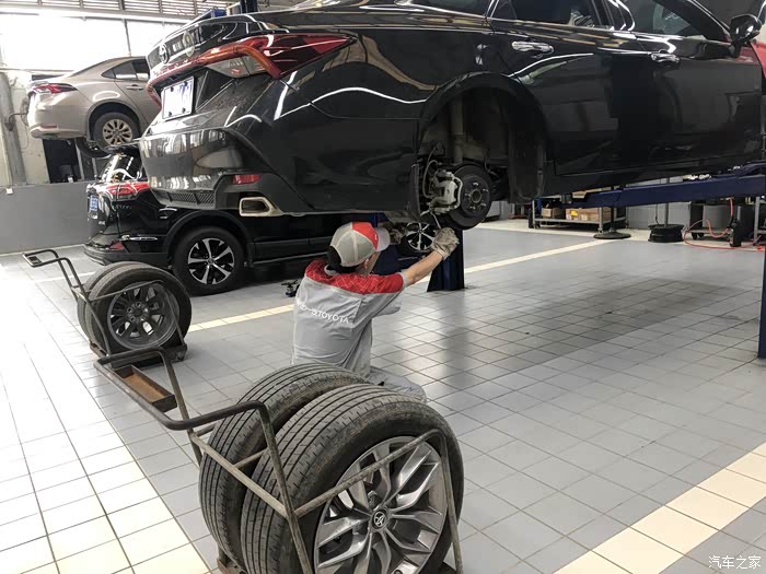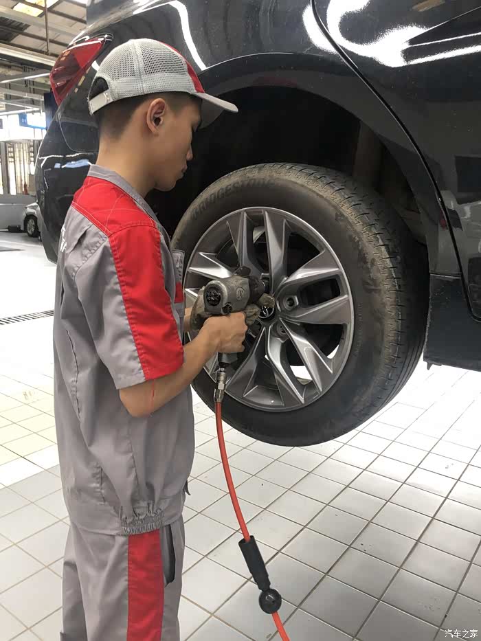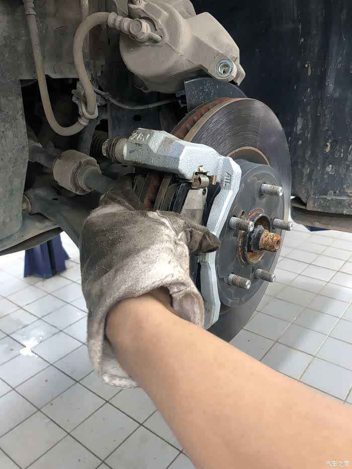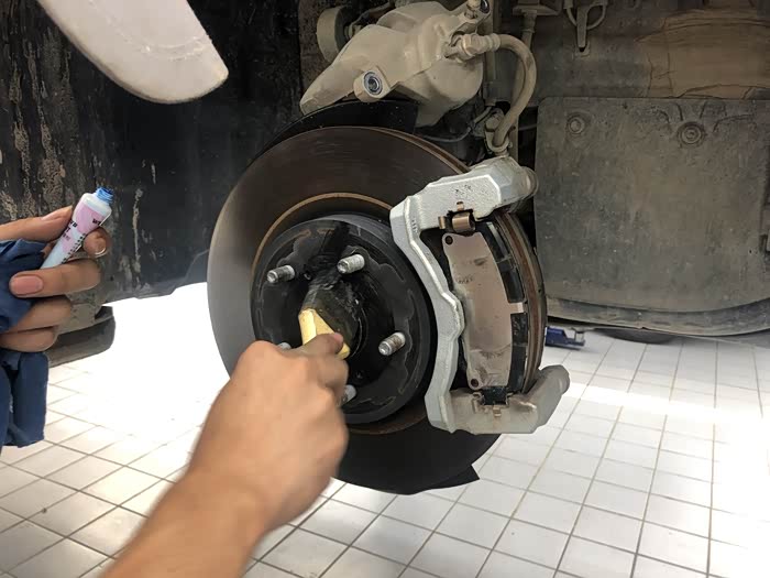 接下来进行四轮刹车保养,师傅真的很娴熟!