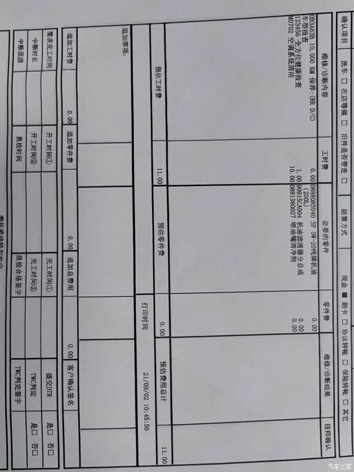这次也是常规保养,因为还在免保周期内,工时和基础的机油、机油滤芯、喷油嘴清洗剂都是免费的,所以没有额外的花费。空气滤芯和空调滤芯不需要更换,拆下来清理干净就接着使用。还有就是车子底盘的检查,检查悬架螺丝、轮胎使用情况,给车子胎压补足,再把旧的机油放出来,全部放干净后再给车子换上全新的纯牌机油
