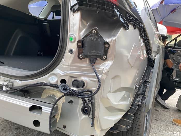 模块安装在车尾左右两侧角位处,先安装固定底座