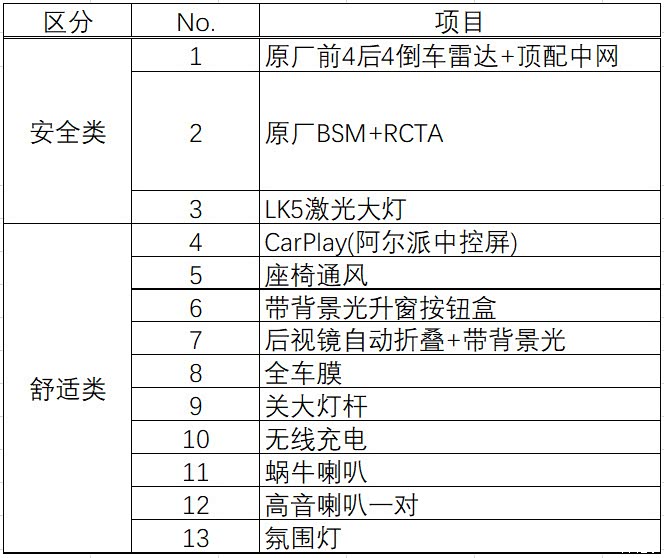 如开篇所讲,总共大大小小13项改造,除了”原厂前4后4倒车雷达+顶配中网,无线充电“这两项是顶配有的配置之外,其余的11项,都是原车顶配也没有的功能,通过自己的无损、无违和改造,实现了安全性、舒适性的全面提升!