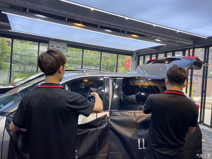 全车龙膜,前挡没贴,其余依次颜色加深。