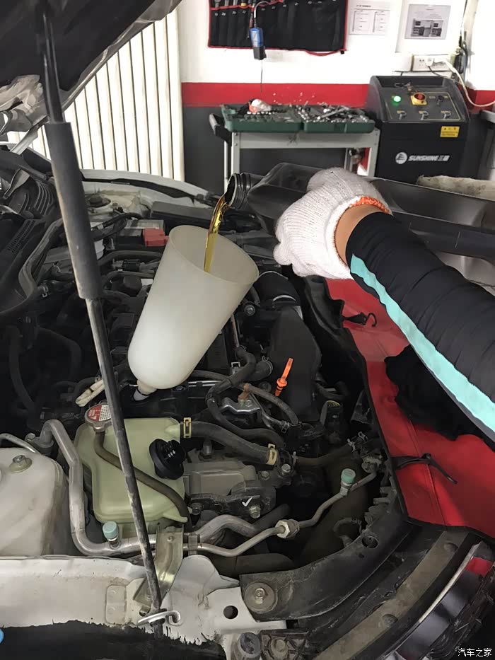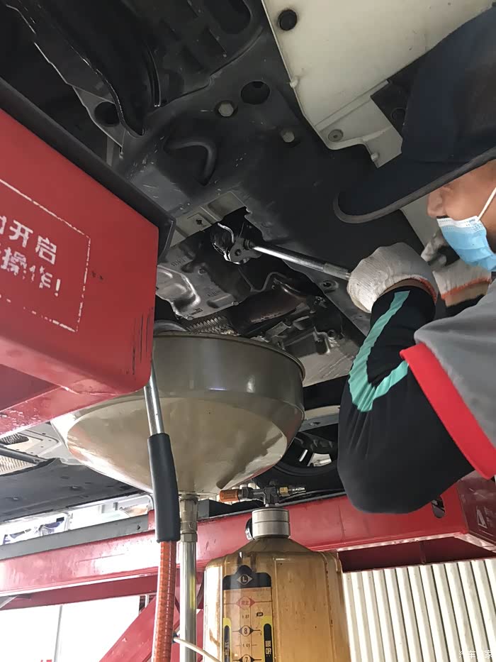 加注机油,有漏斗好评,机油大概加了3.1升,页面在油尺中线偏下一点点忘了拍照了