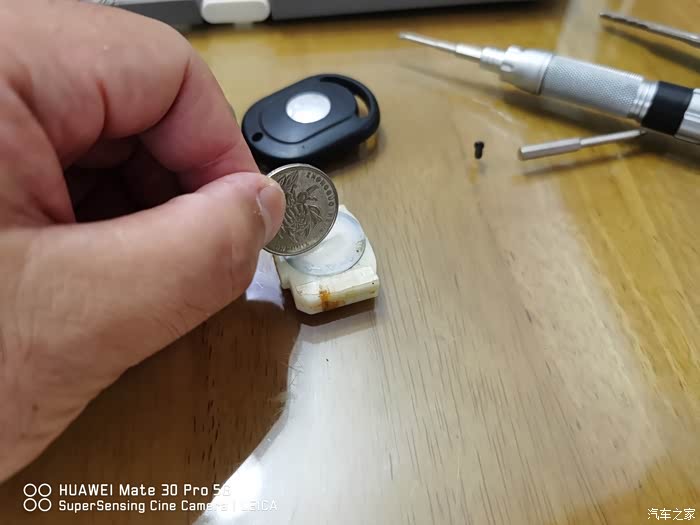 取下钥匙芯片,按压开关,没有任何信号,电池果然没电了。