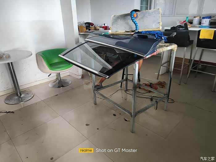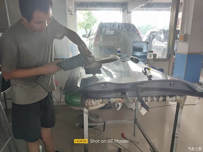过程中还使用到了白光灯,用来照射漆面发现细小的凹陷