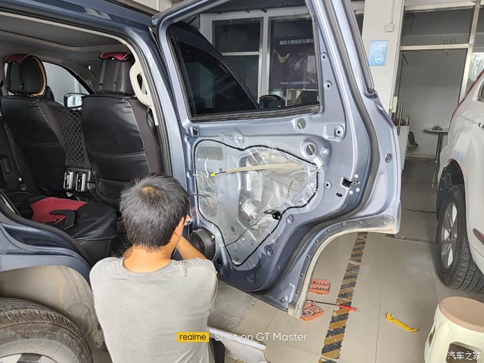 可以看到车门的隔音棉与防水膜,用料还是很到位的