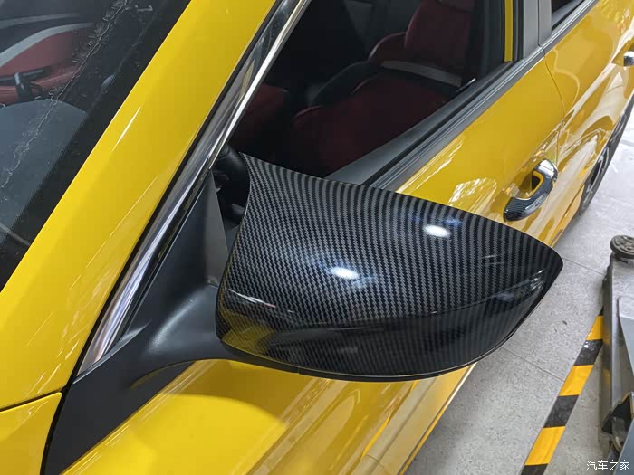 碳纤的后角后视镜盖。保护后视镜的同事增加气息。M系设计理念可能。