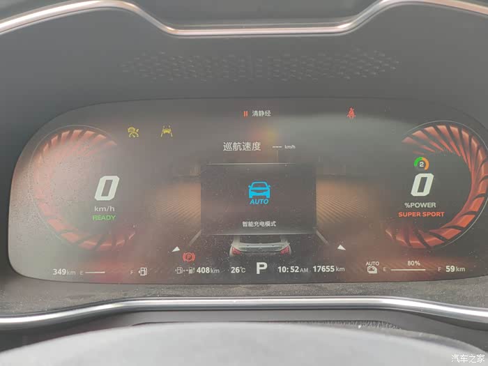 运动模式启动后,仪表盘会伴随一声音效,变成红色,很有驾驶氛围。