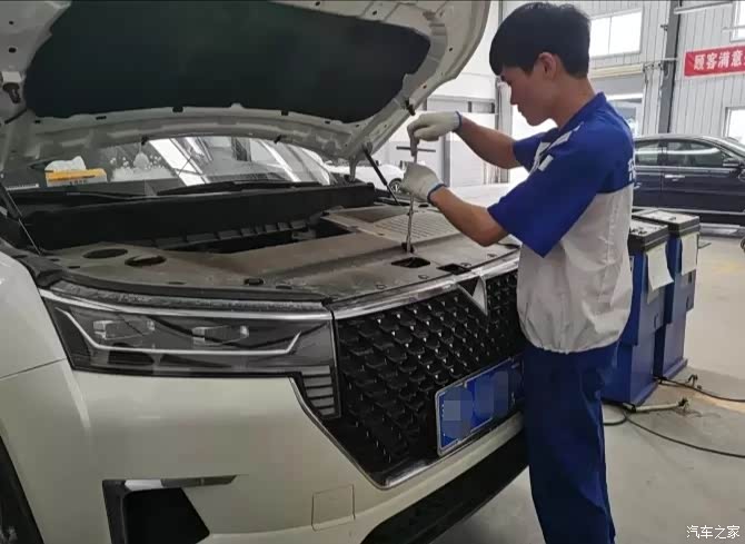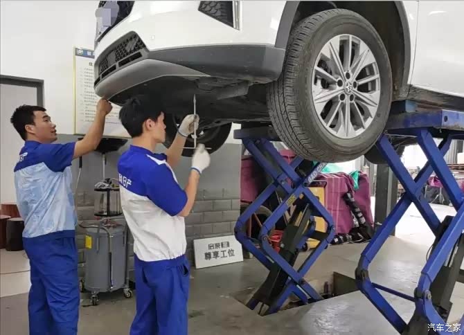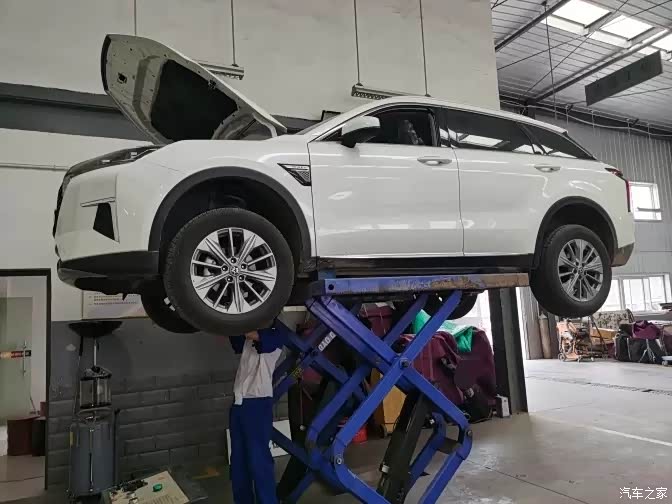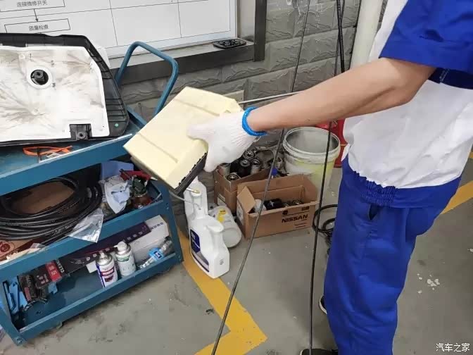 麻烦师傅把车开到空的工位上准备开始先检查一下空气滤芯等等的地方。
