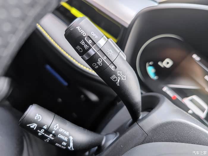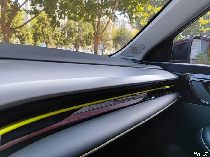 相比于张扬的外观,内饰这块还是挺含蓄的,整体布局很简洁,但是也很实用。一些细节上做的也不错,就比如这一条黄色的线条,给平平无奇的内饰增添了一丝活力。