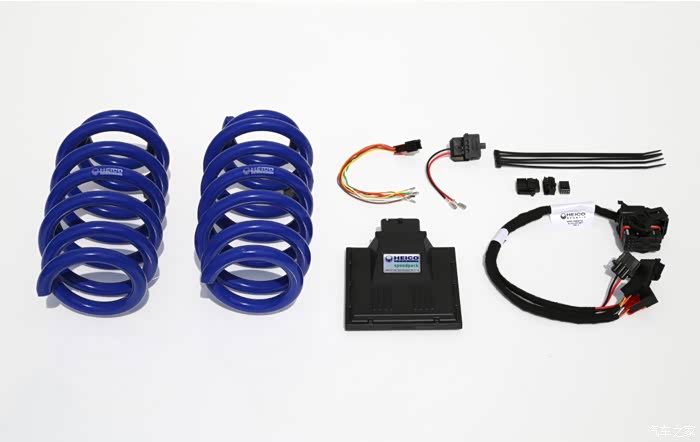 图片来自Heico官网,这是一套Heico为S/V90定制的短簧组件,由于空气悬挂后桥是没有复合叶片弹簧的,所以后桥需要一个电子适配器做到后桥降低