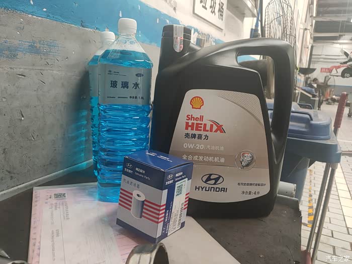 这就是保养要用的机油和机滤了,工作人员还送了我两瓶玻璃水