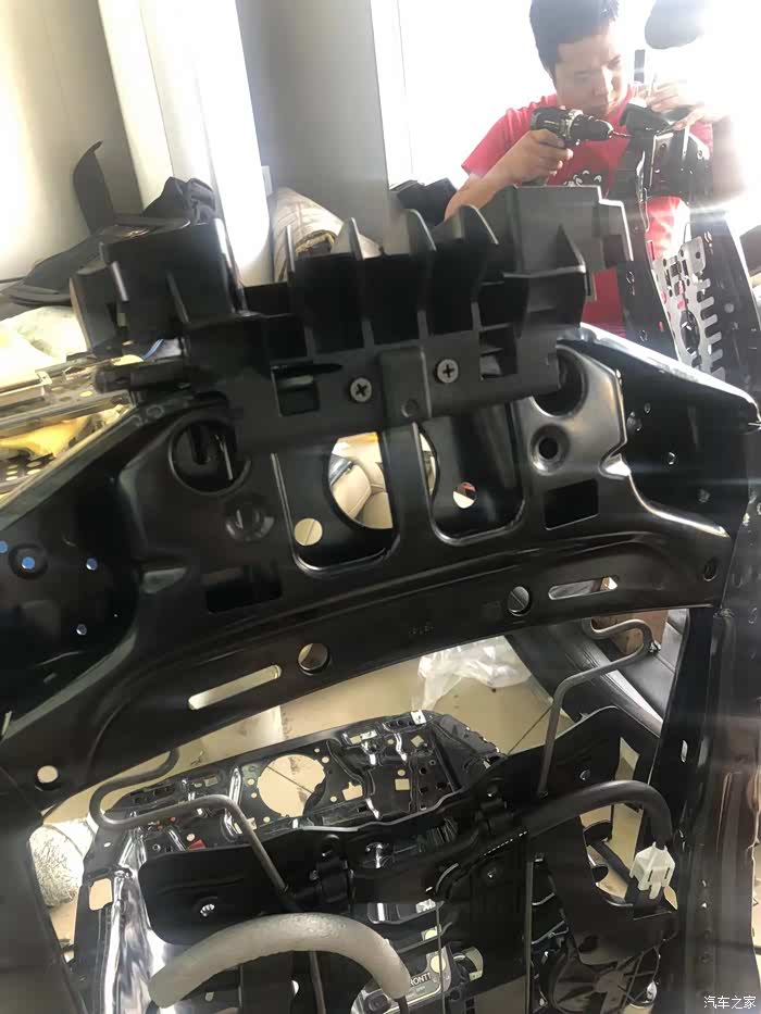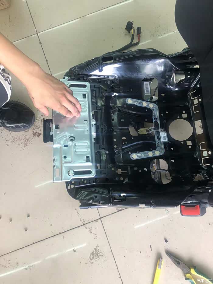 上面的图片着重说一下。原座椅框架 没发安装 运动版座椅头枕底座,根本对不上安装位。所以把这个支架切掉了一半,用电钻打眼直接自攻螺丝固定。下面的图片也是反应的这个东西。稍微影响了头枕锁定按钮,但是知道位置大力按压也能拆下来。