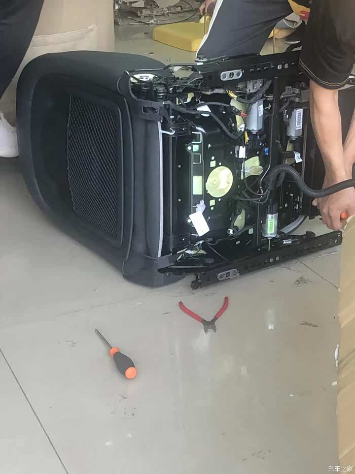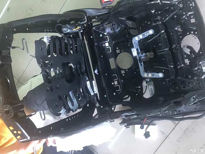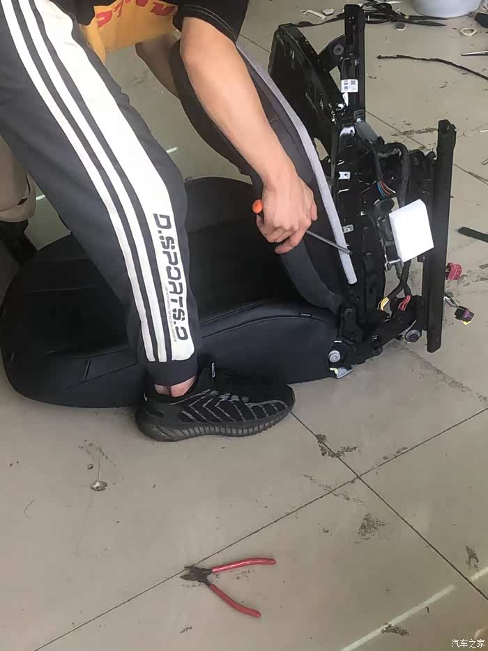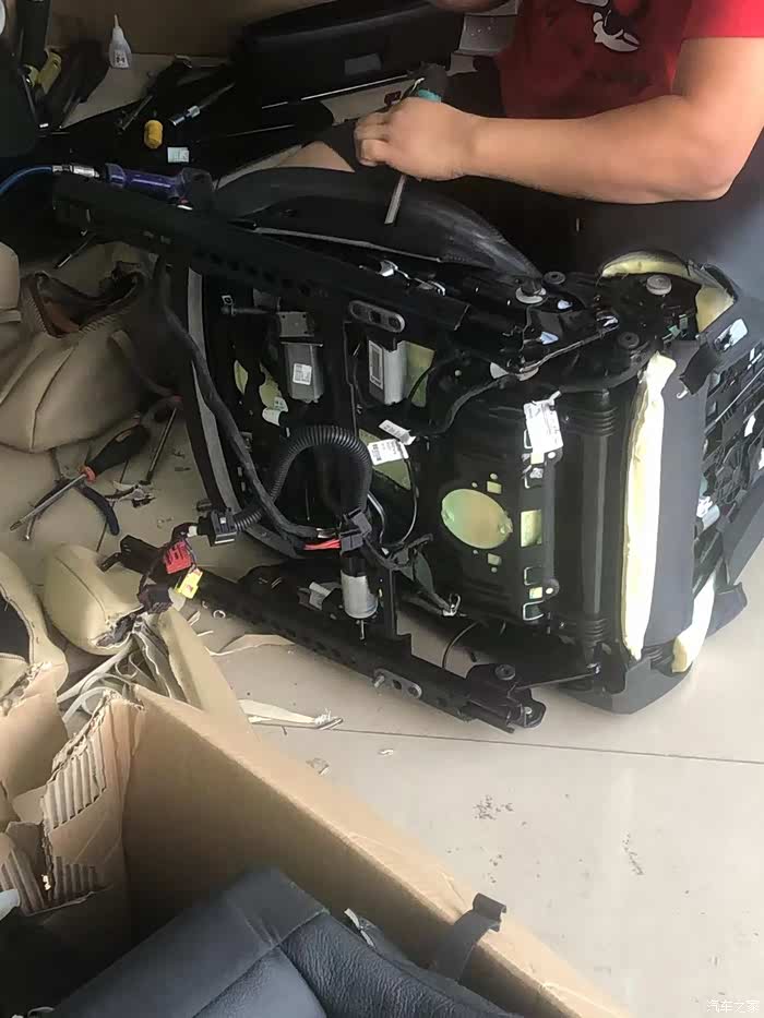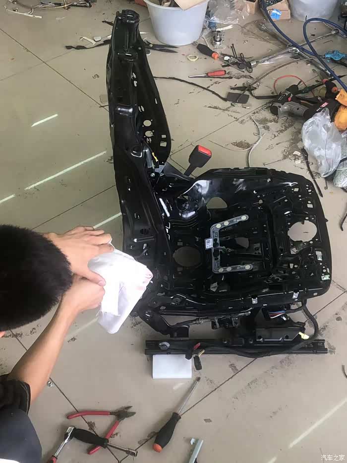 开拆,座椅总成拆下来,拔掉原座椅海绵和皮套