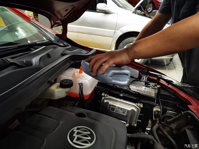 几分钟的功夫,重新装上新的水壶,开始添加新的防冻液了。