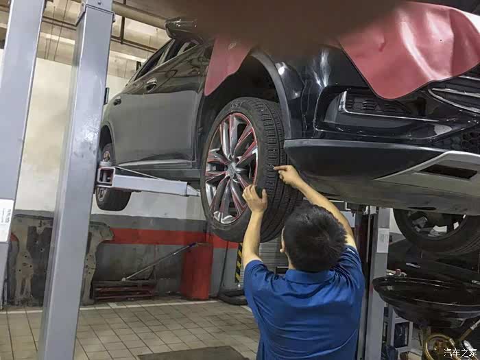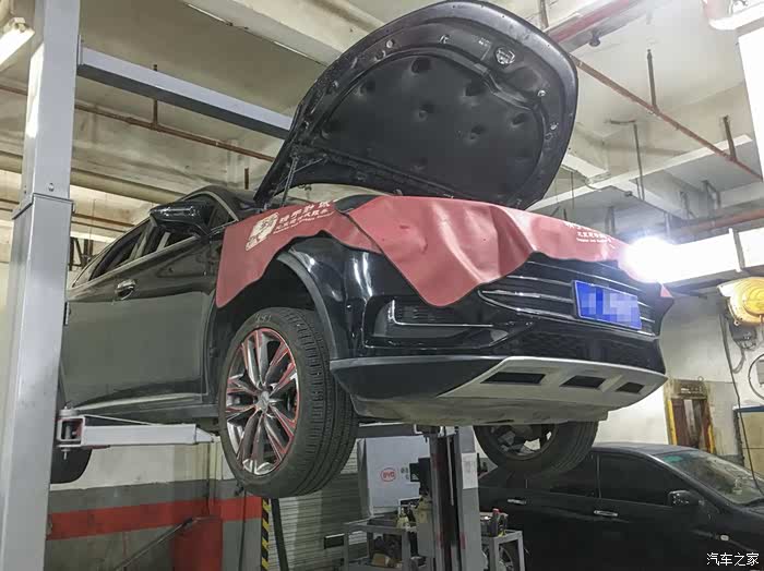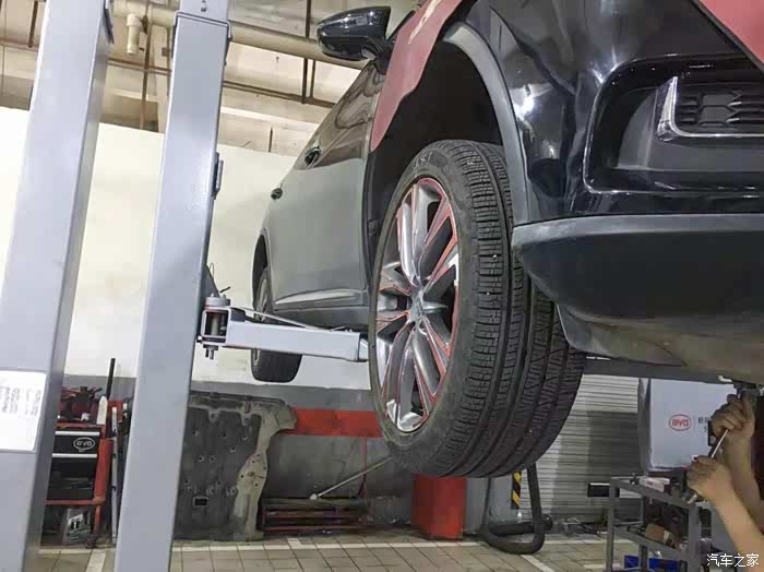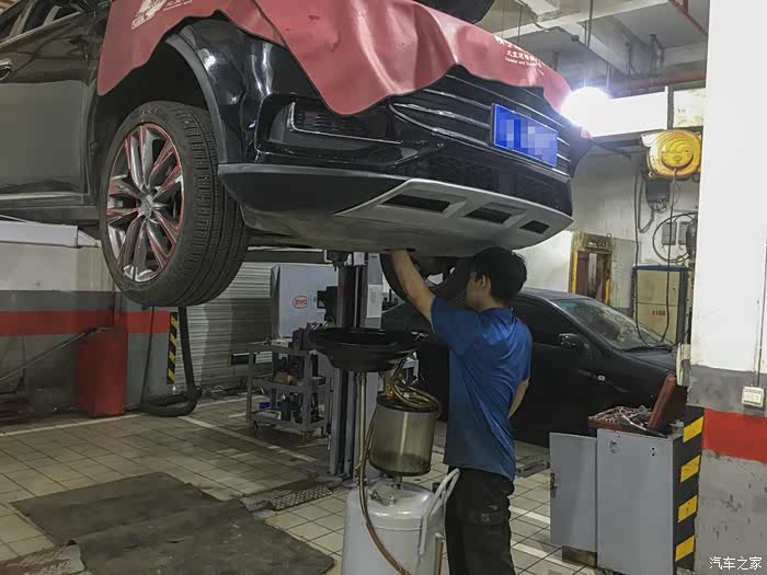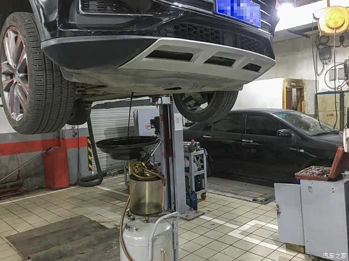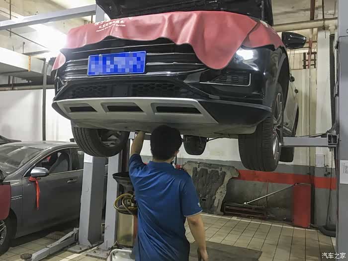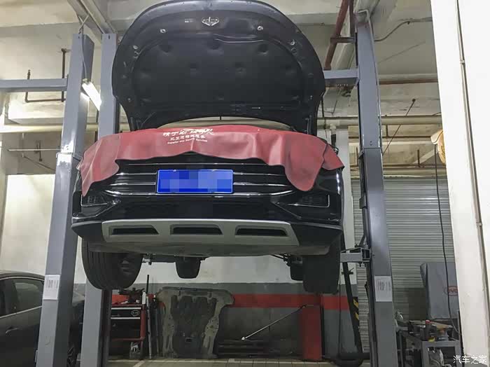 第一个项目是更换机油,先用举升机将大唐架起来。