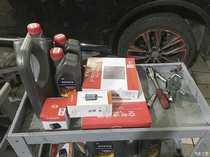 这3瓶机油都是给大唐的,一会儿还要换空调滤清器、空气滤清器、燃油滤清器、机油滤清器等,大保养,项目多。