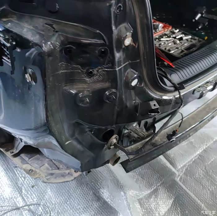 我太心疼我的车了,赶紧把车第二天开到了家附近的4S店,4S店的服务接待很耐心,给我讲解理赔流程,因为不是我全责,又让对方车做了转账授权,直接把理赔款打到4S店的账户内,修完车我直接走人就行,接待和我说大概需要3天时间,我简单说说后来的维修,更换了后保险杠大概1008元,外尾灯1009元,内尾灯2451元,电眼159元,后杠反光板49元,加上其他工时费用,大概7000元左右。拆解的时候我全程看着,不是不信任4S店,我确实想自己看看我的车被撞成什么样子,这里不得不夸奔腾的做工,后杠骨架竟然毫发无损,只是有一点点的弯曲但是不严重也不用更换。大家可以想一想被自卸车刮到,我想肯定是很严重很严重,结果还是很欣慰的,下面给大家看看我的车损失吧。在4S店拍摄的一些细节。