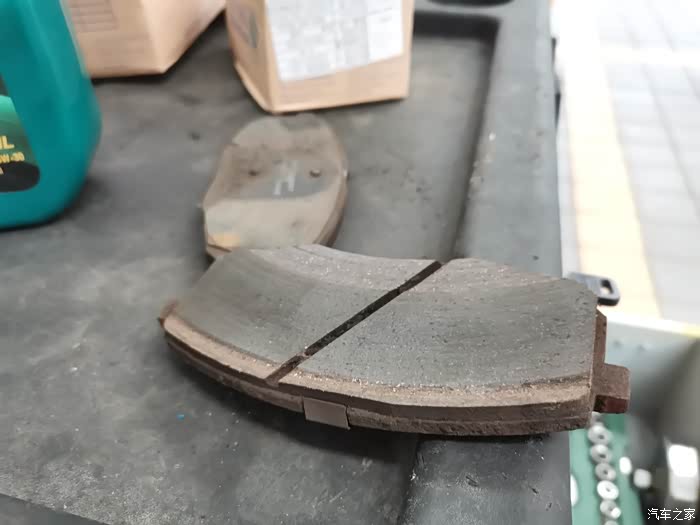拆下来的旧刹车片,已经磨损到了极限。