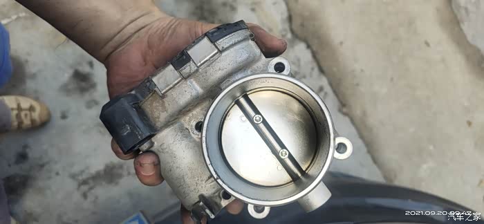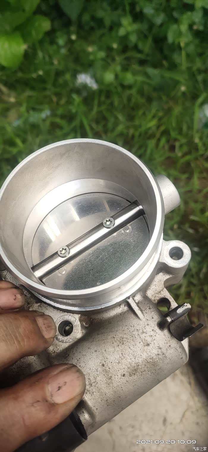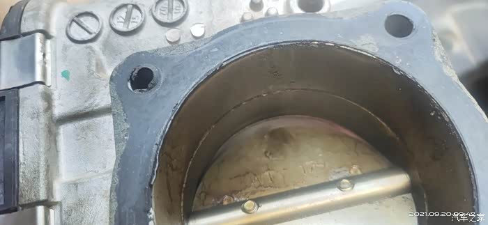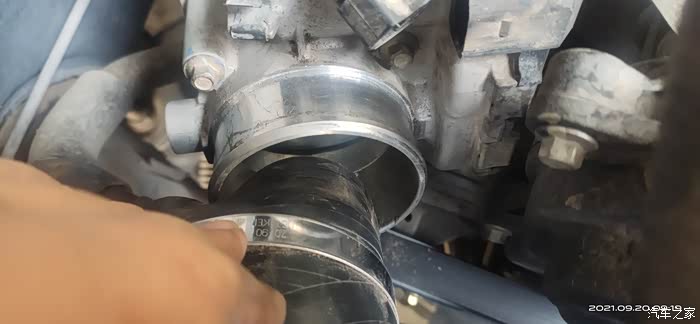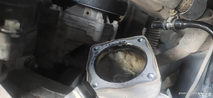 因有段时间没清洗节气门了,加上近期塞车情况略有增加,所以拆下胶管就可以看到节气门略脏。