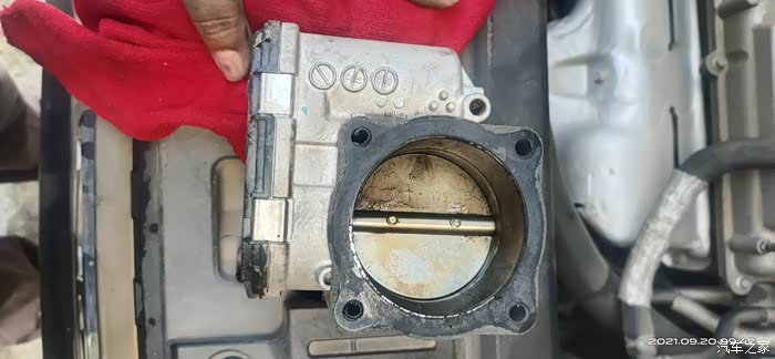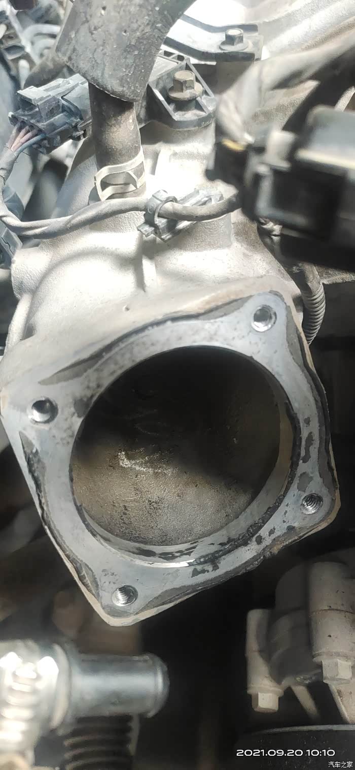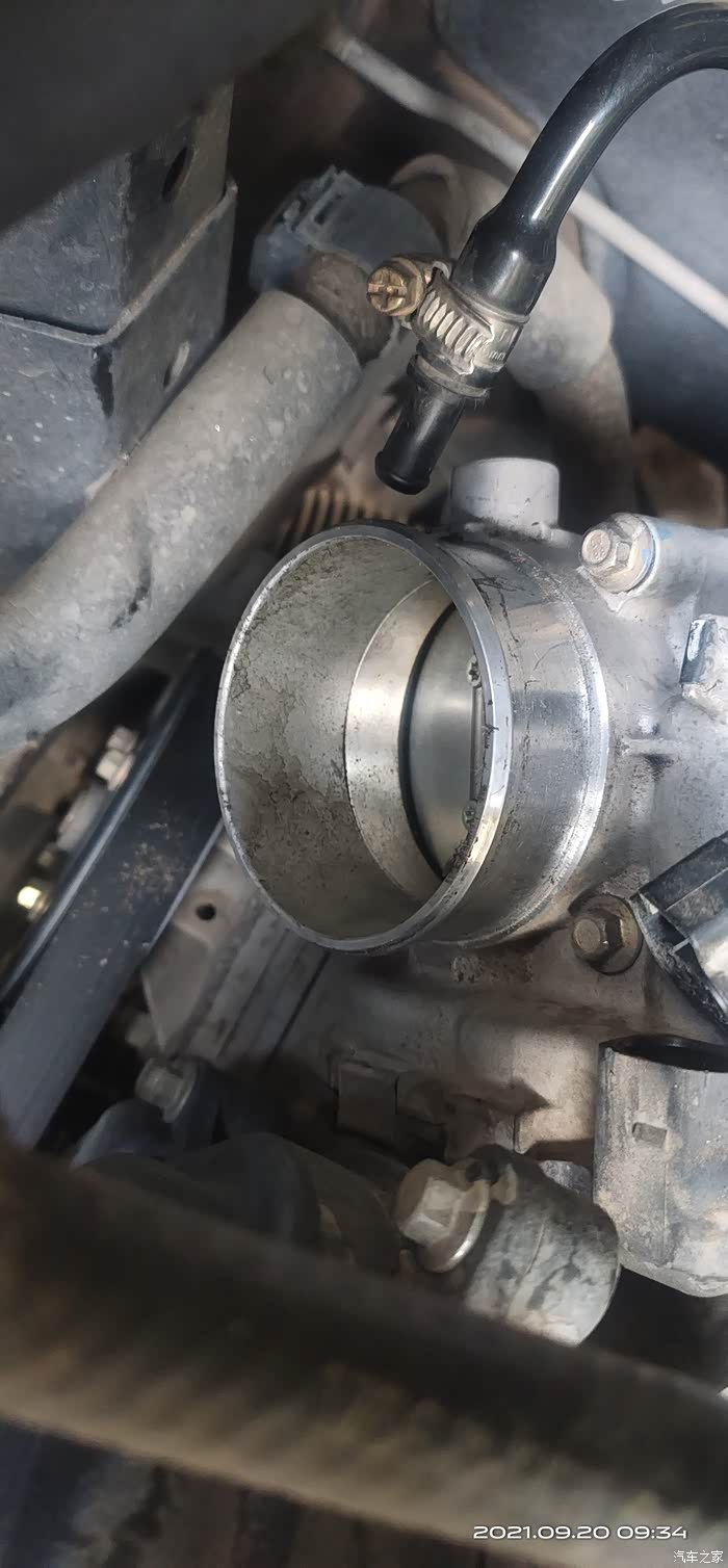 连接节气门的胶管没移开,还看不清楚里面脏的程度。