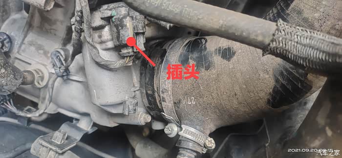 拆下紧固卡箍时,顺便将节气门上的插头一并拔下来。