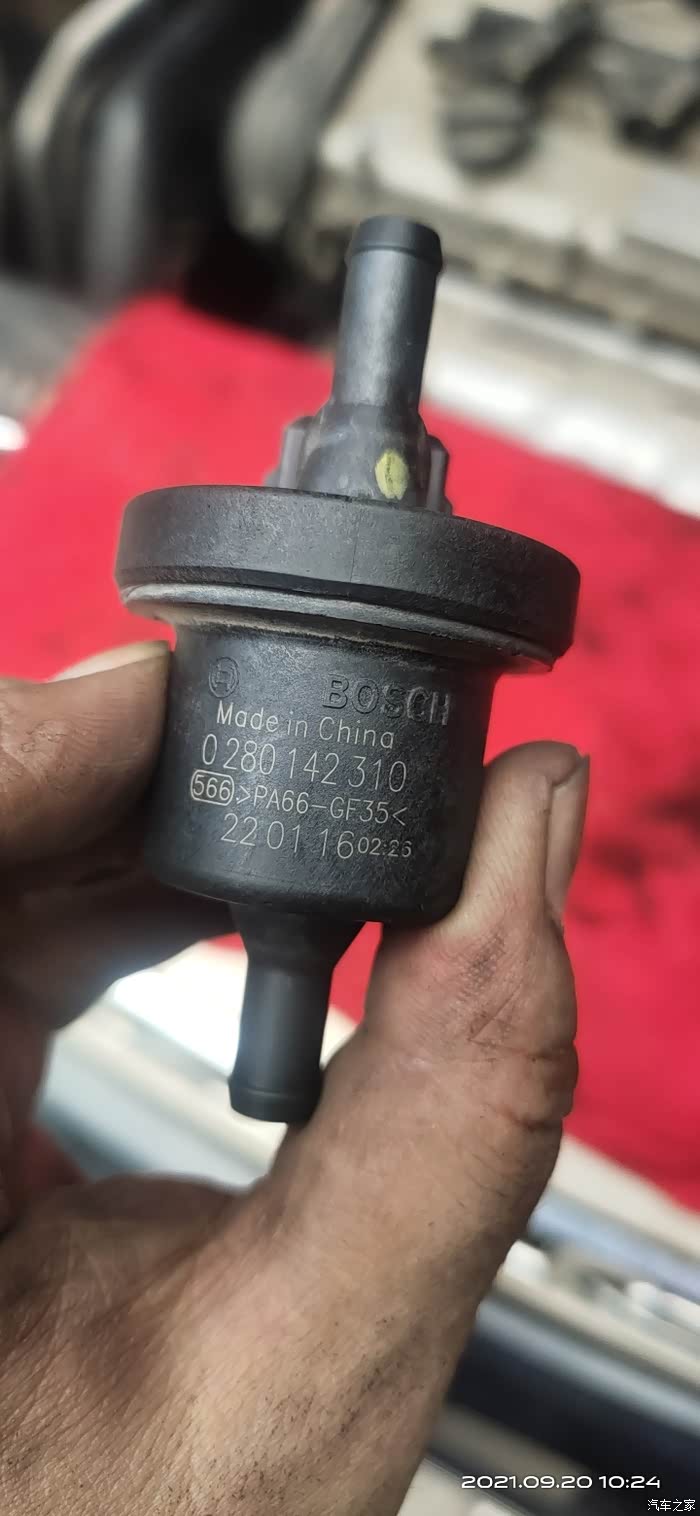 因听车友说,碳罐电磁阀里也可能有积碳或油污,建议一起清洗一下,所以清洗完节气门就开始拆碳罐电磁阀检查一下。