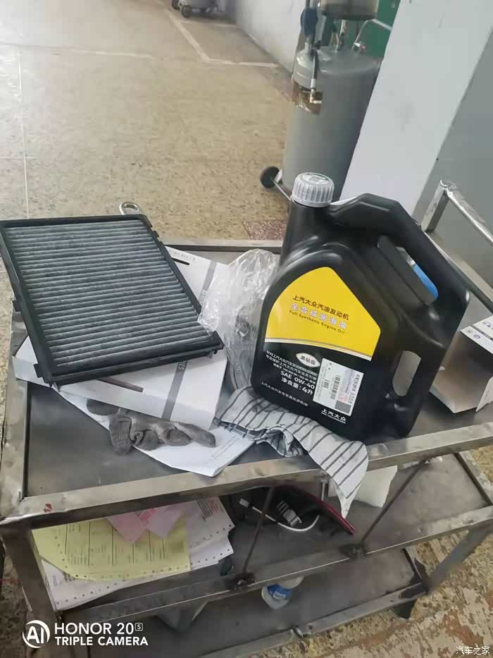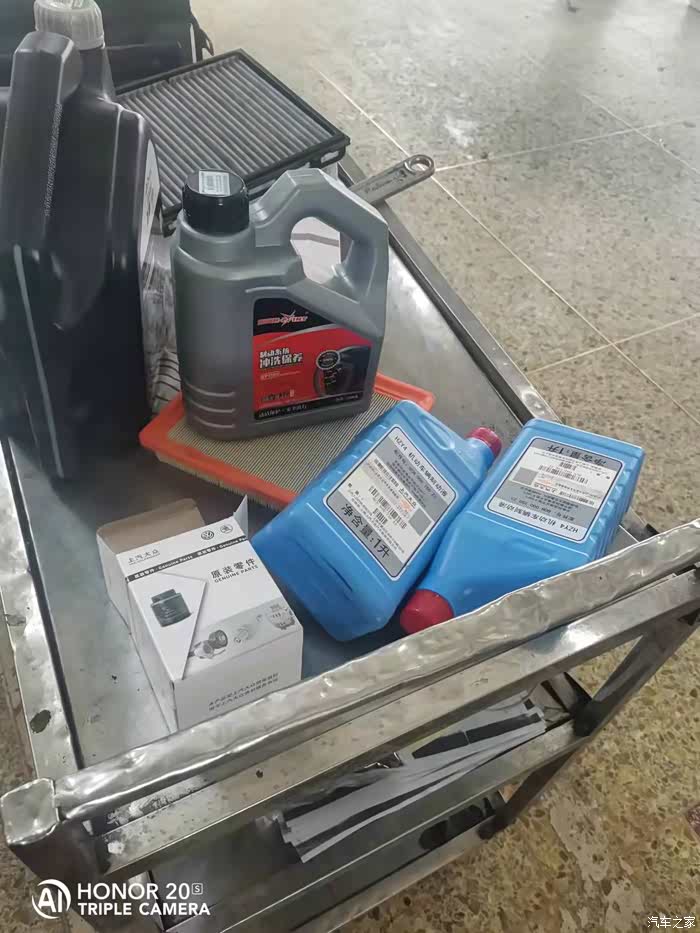 小插曲,本来可以早点去保养的,可惜为了省时间,我走了一条我没走过的路,结果迷路了。导航又给我导回原来的路上了,结果导致我到4S店时已经接近12点了,所以沟通完之后就直接去吃饭了,回来一看,师傅已经把机油放完了,机油滤芯也已经更换,护板装上了,所以我就没拍更换的照片了。