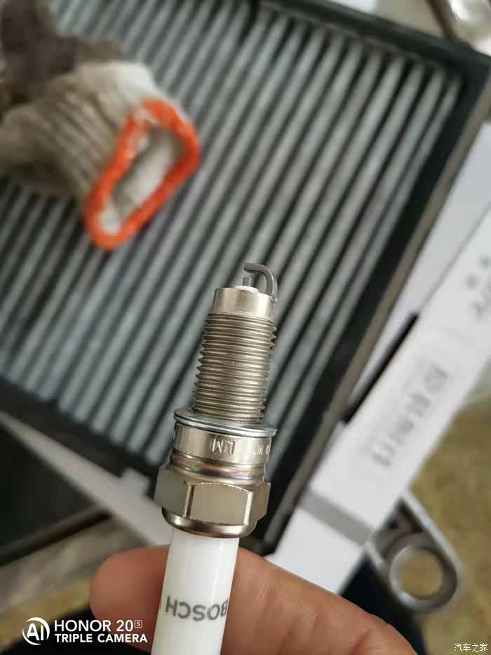 新的火花塞,博世的,看着是头上面很新的样子,不知道火花塞到底是多久换一次。