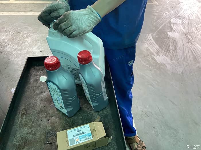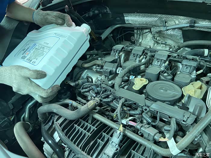 倒入新机油,4升的大瓶装