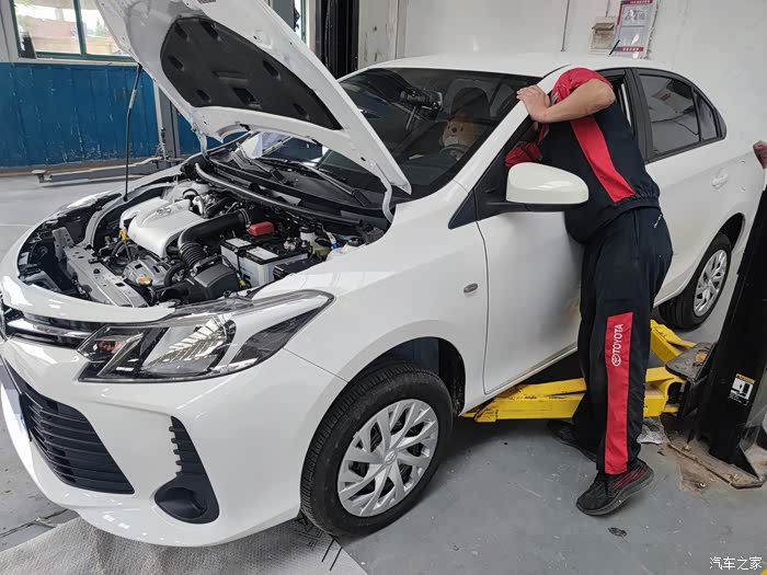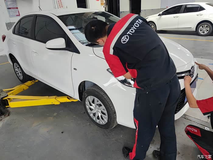 师傅在检查车子状况。