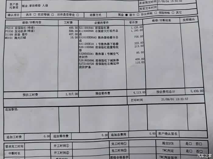 本来轻松愉悦的一天,唉!冒出这事。回到家之后我就大电话给我在4S店内学汽修的朋友让他给我看一下车的情况,我也是第一次出这事,还担心补漆会有色差,但是听完我朋友说之后我就放心了很多,他们都是用原厂的油漆,补完看不出来色差。