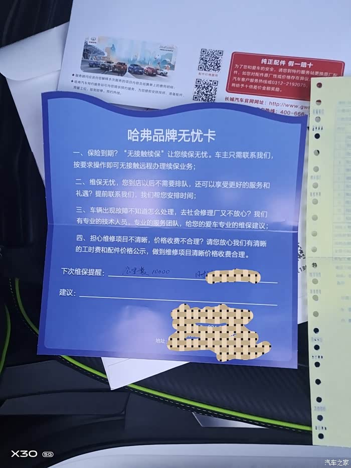 这这个保养的卡,提醒我下次是什么时候保养,还有需要注意的事项,对我我这种新手小白还是相当的管用啦!