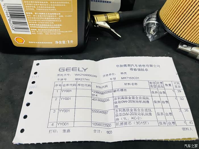 车子这次做的是基础保养,没有附加其它项目,开的也不算太多,基础保养也是足够了