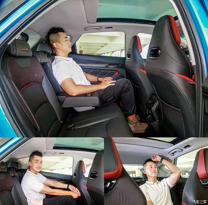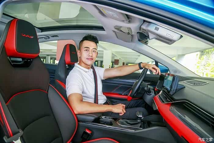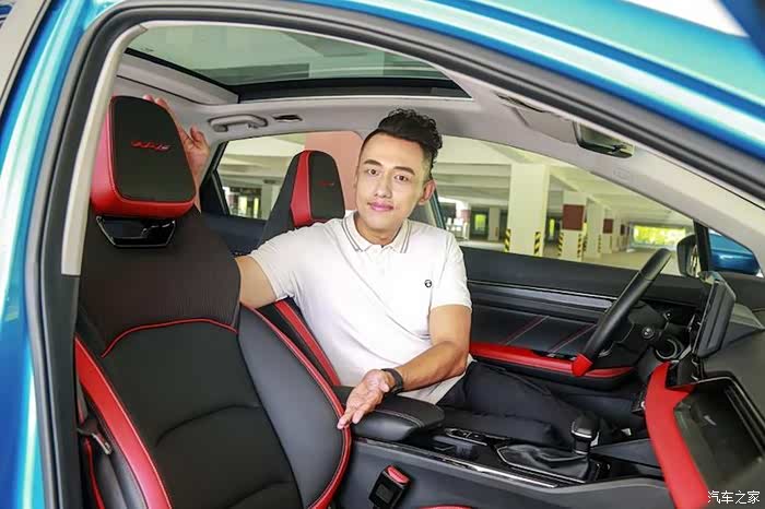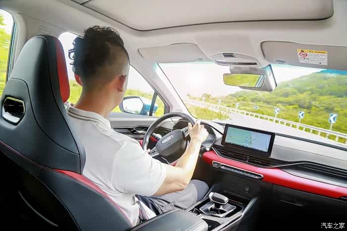 陈展对帝豪S这个看上去很运动的前排桶形座椅称赞有加,红黑相间的运动配色,座椅表面不同质地的拼接,看起来十分运动,但乘坐感受却表现的相当舒适。前排座椅坐垫与靠背边缘那宽厚的侧翼对身体的贴合感很好,承托性也十分到位。而前排座椅加热和主驾驶位电动调节也是很不错的配置。