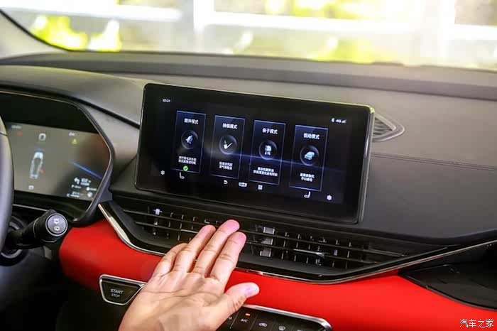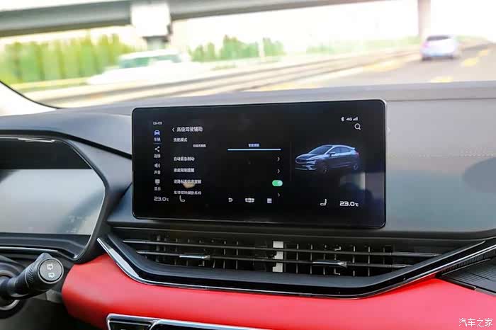 切换到运动模式后会更机敏,仪表盘底色变红,发动机转速也会升到2000rpm以上。油门踏板和转向也会变得更加紧致。只是驾驶模式的切换操作有些繁琐,需要通过中控屏的设置去选择。要是能在换挡杆周围设计一个物理实体的驾驶模式切换按键,效果会好很多。