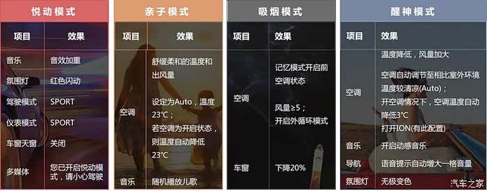在汽车越来越智能化的今天,车并不应该只是从A点到B点的移动出行工具,在陈展看来,汽车也应该是有情绪的,懂车内成员心情与动作的好伙伴。帝豪S在这方面就表现的非常聪明,它还搭载了草莓音乐智能交互系统。该系统拥有“悦动、醒神、抽烟、亲子”四种人性化情景交互模式,每种模式针对音乐种类及音量大小、车内氛围灯颜色节奏、驾驶模式、空调系统等,都会进行细化差别的调整,营造出满满的仪式感。