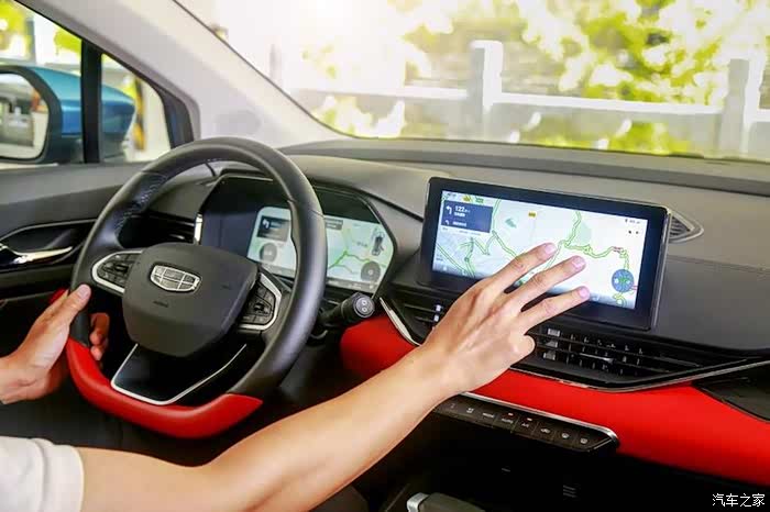 车载地图距离驾驶员视觉距离越近,行车的安全性就越高。帝豪S的双10.25英寸大屏之间还存在着一个互动的操作,叫做“三指飞屏”。也就是通过三根手指向左滑动处于导航界面显示状态的中控屏,此时的导航地图就会直接移动到全液晶仪表盘上。不需要时,再向右滑动中控屏即可解除。这样做的优势就在于减少驾驶员开车时的视觉位移,提升驾驶时的安全性。