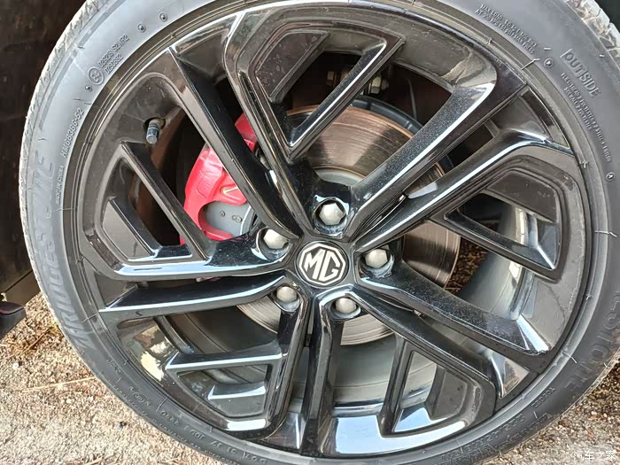 原厂就是黑色冰刃轮毂加上红色卡钳,颜值没话说。