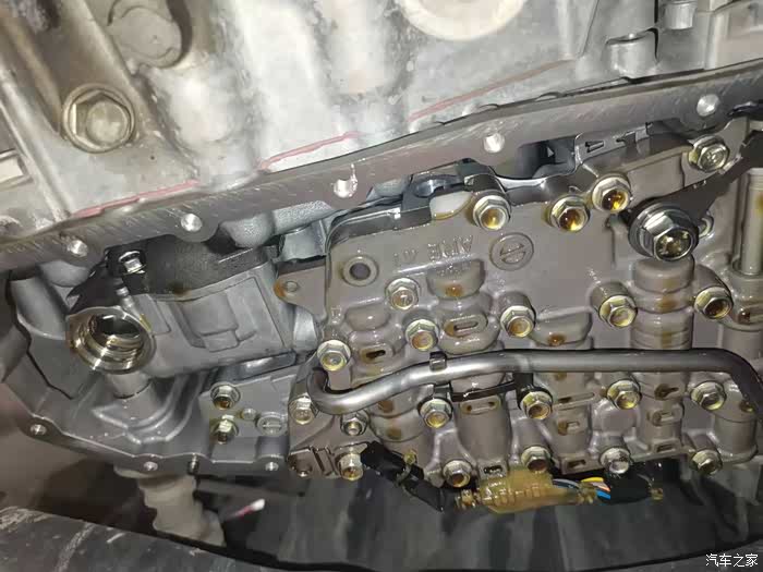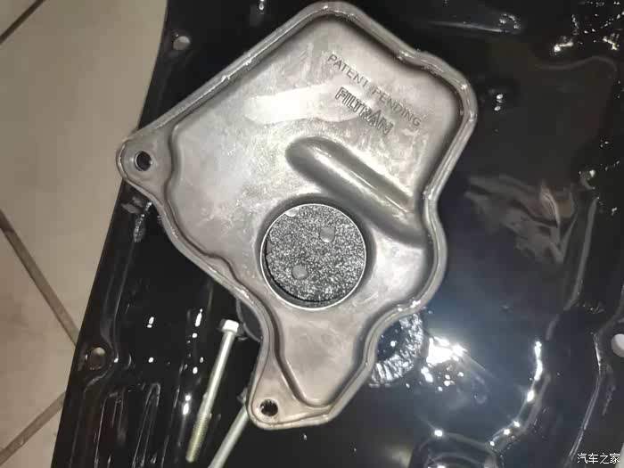 这是金属的滤芯的,中间出现个小插曲。配件拿来的是纸滤芯,小技师说滤芯不对。售后经理赶紧叫来采购部的和另一个技师,回复是铁滤芯不用换只换纸滤芯。纸滤芯装在变速箱的侧边的,虚惊一场