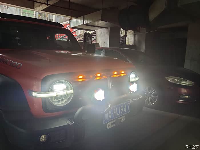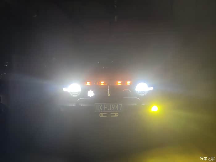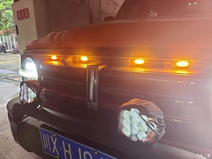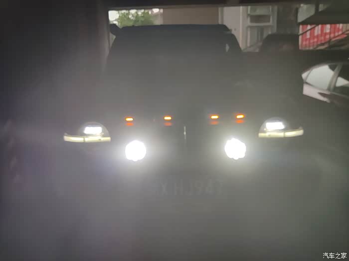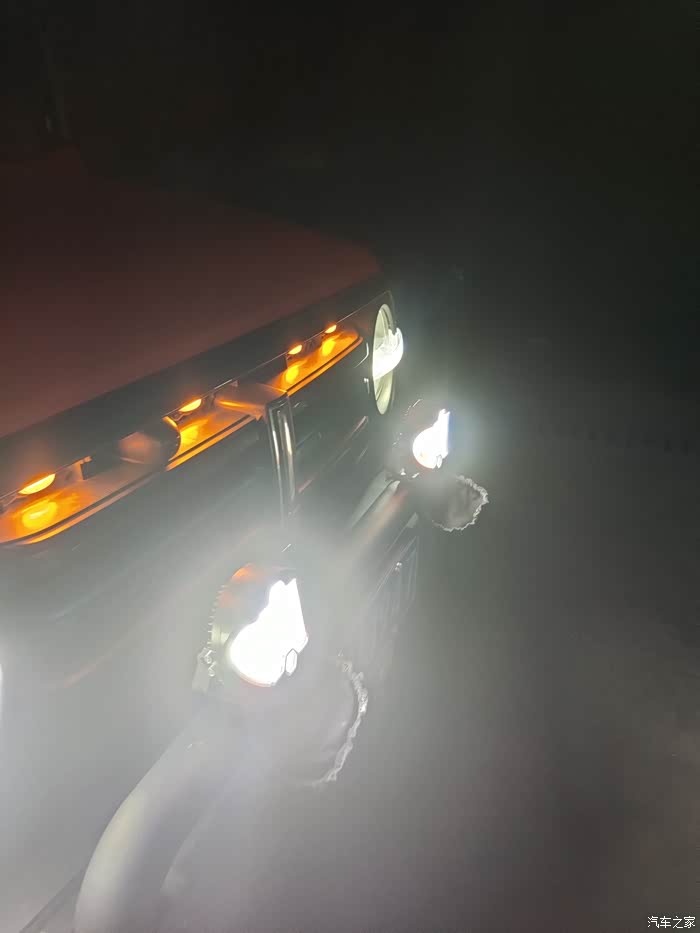 灯光亮起来,觉得越野车前面有了两个辅助灯了就更好看了。效果更好,越野气息也更浓了。