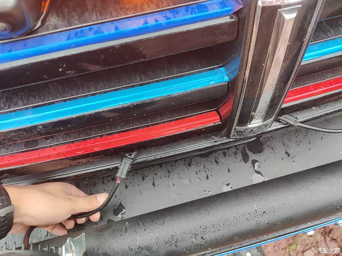 前面保险杠灯光的线,从中网出来。安装也很简单。