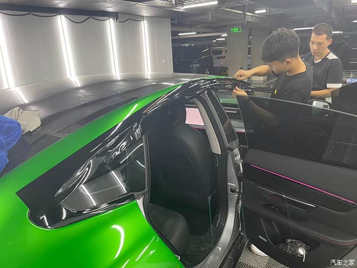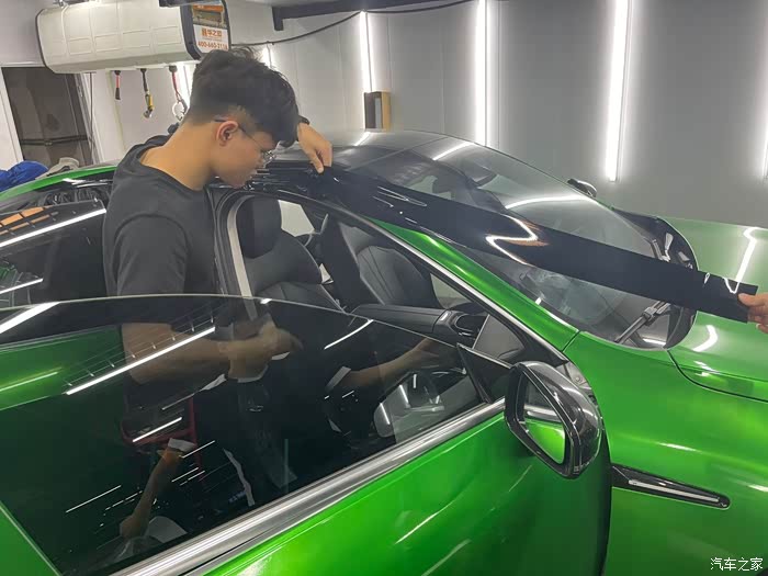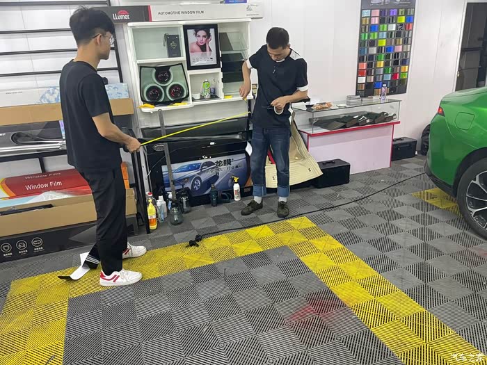 行车到达贴膜店后,和安装小哥短暂沟通后,开工,两个人需要大概时长在三个小时左右。