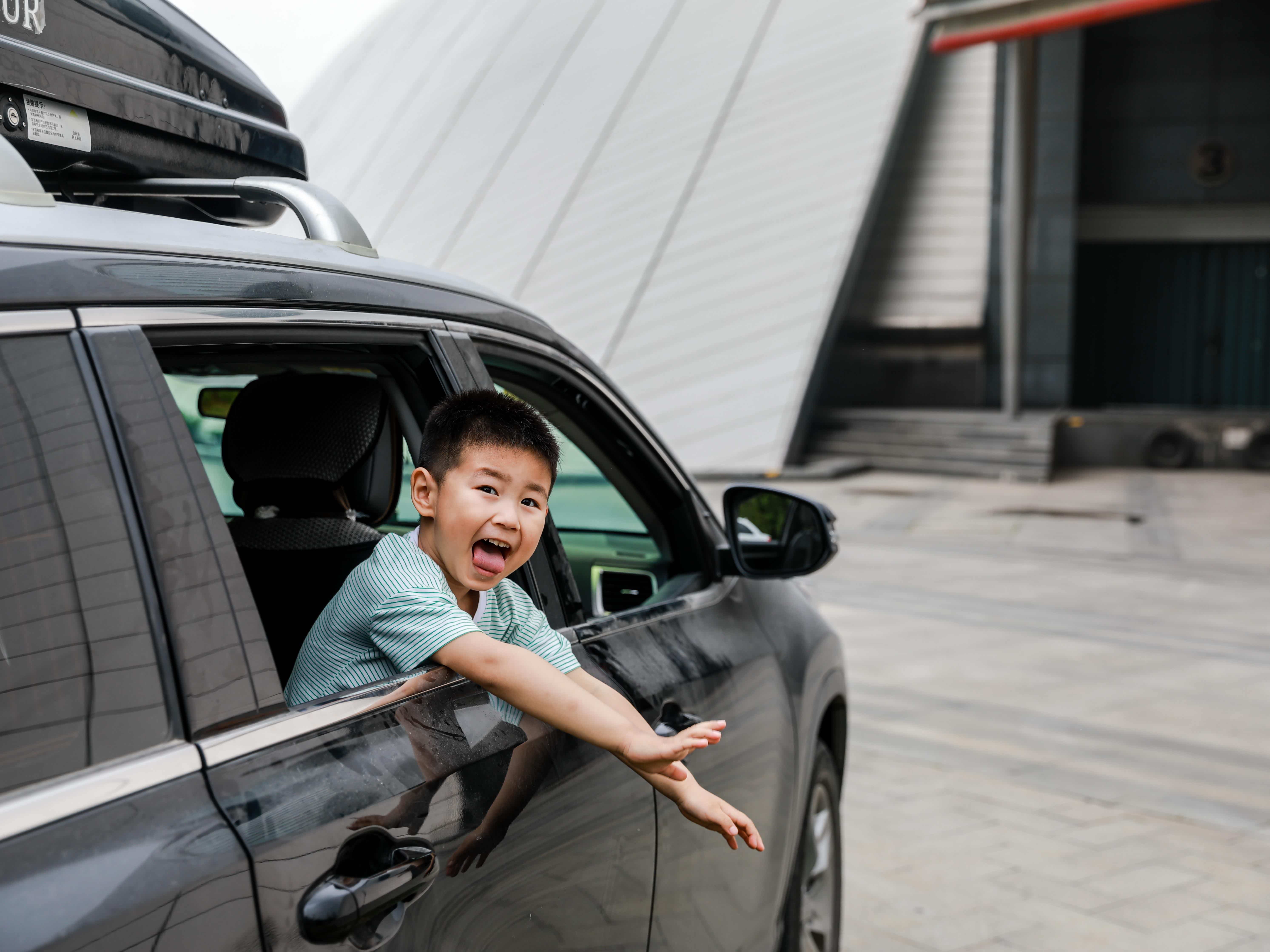 车子行驶过程中,严禁儿童将头、手伸出窗外,避免会车造成危险。
