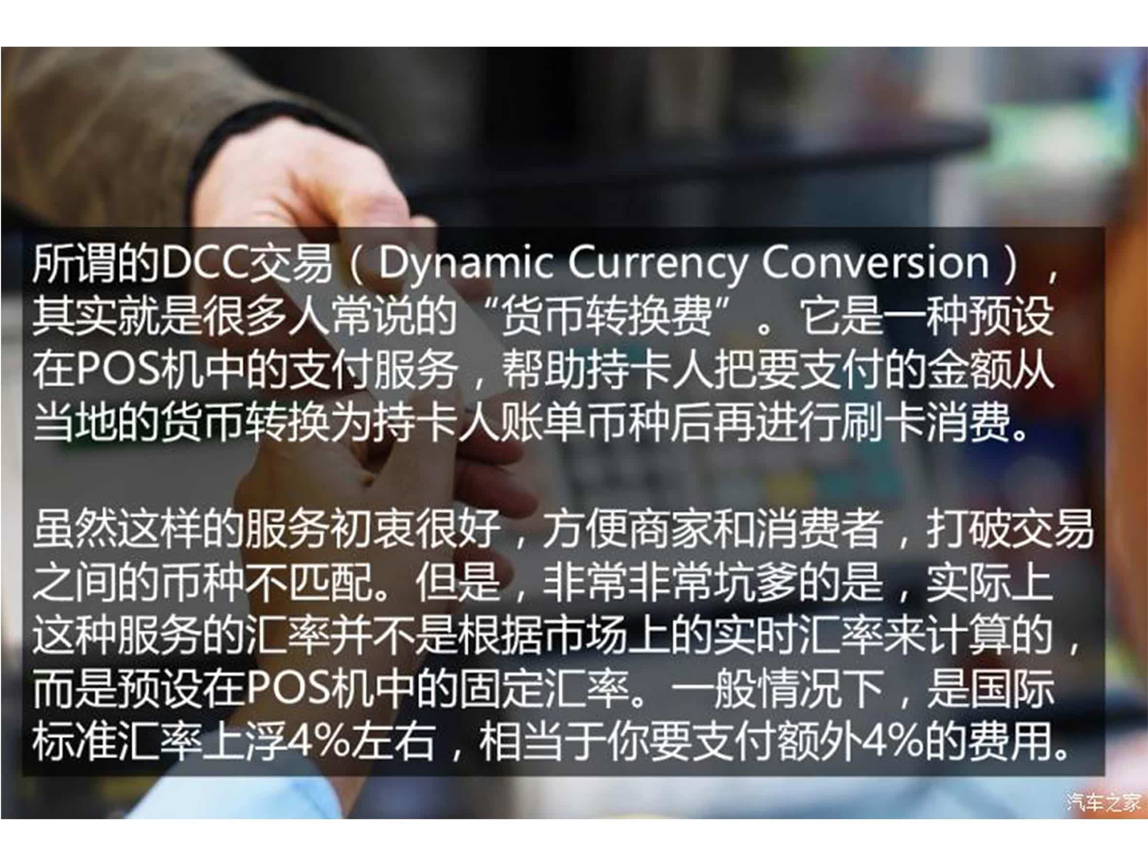 1%-2%的货币转换费远远不如4%左右的DCC交易坑爹,但是毕竟也是让我们额外付出了成本。这也是为什么银行很长一段时间都在大力推广全币卡信用卡,这样就就可以让你既能避免DCC交易费用,又能让你不用付货币转换费。