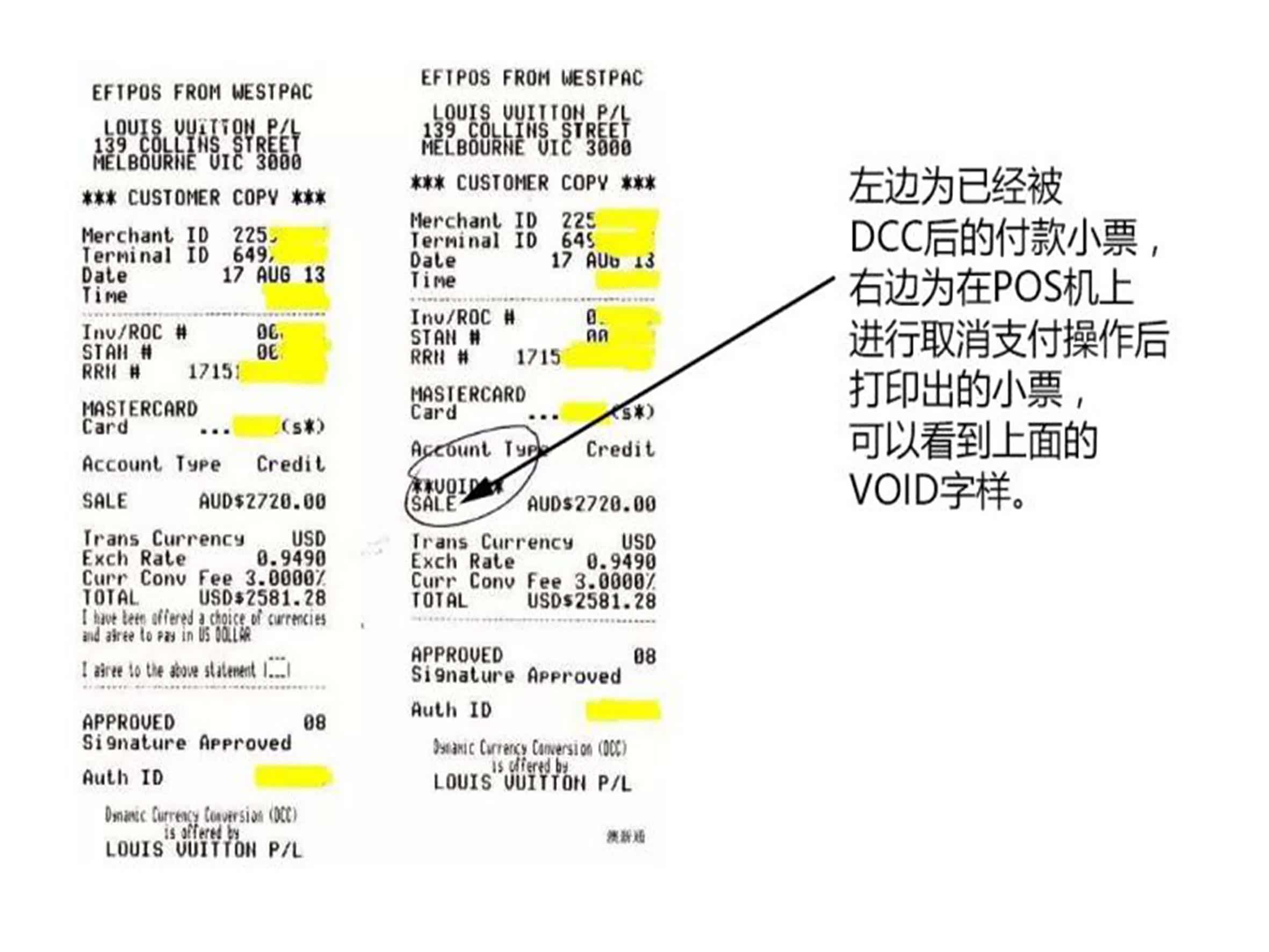 这里提醒大家千万注意,取消交易并非只是简单地涂改POS单或拒绝在POS单上签字就了事的,一定要在POS机上操作,过程中通常会再要求刷一次卡,也可以不刷卡取消的,但是一定会有另一个小票打印出来,并且上面标有VOID字样的。