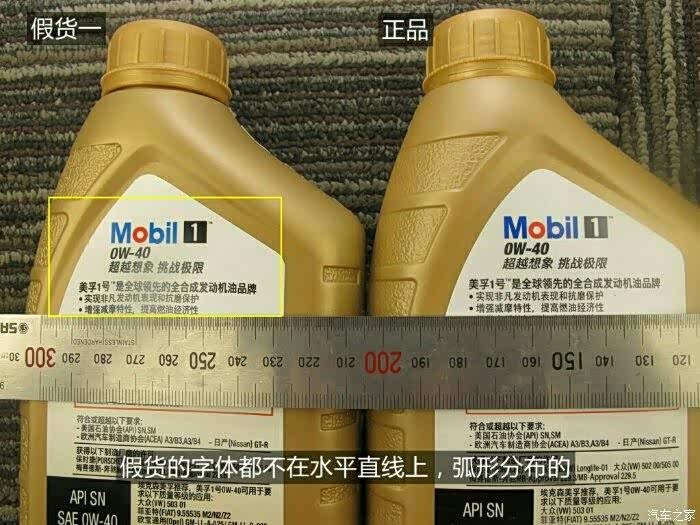 三瓶机油的重量完全不同,假品分别是887克和941克,与正品908克还有轻和重的区别,润滑油类的密度大概是850克/升左右,加上瓶子重量,差不多900克。假货从外观有多处跟正品不同,仔细对比,有几处细节,假得离谱。