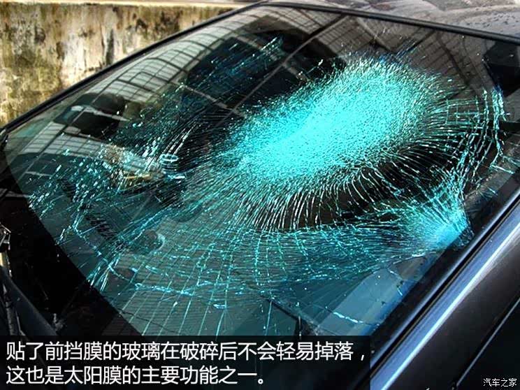 另外,太阳膜还有一个名字叫防爆膜,是因为好的防爆膜还可以起到加固玻璃的作用,使玻璃承受的重力提升3倍到4倍左右。虽然原厂前风挡玻璃是夹层玻璃,两层玻璃之间会有一层膜,在发生碰撞时不会完全掉落,但前风挡内侧的玻璃在撞击时还是会掉一些小的碎玻璃,而在前风挡内侧贴了防爆膜在发生车祸或碰撞时,就可以避免这种情况发生。