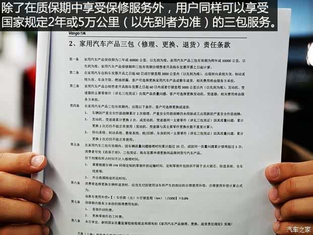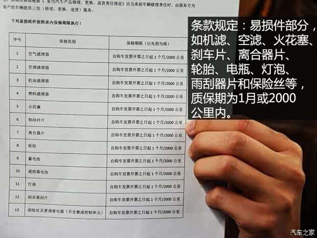 另外无论是店保或承保机构/保险公司的质保,也分为整车质保型和主要部件质保型。整车质保无需多说,就是在质保期内有任何非人为的故障均可维修处理,而主要部件的质保则只负责发动机、变速箱和底盘悬架方面,电路、内饰及车内影音等设备则不在质保范围内,所以在这里建议用户咨询清楚后再进行购买。